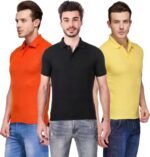 Men’s Polo Neck Short Sleeve Casual Tshirt Combo of Black, Orange, Yellow colors (Pack of 3)