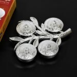 Elevate your home dining experience with this Tree Shape Mukhwas Dani Serving Tray. Perfect for serving mukhwas (after-meal snacks) or any small treats, this unique tray features 4 compartments arranged in an attractive tree shape, adding a touch of elegance to your dining table or kitchen. Made from durable materials, it?s both functional and decorative, perfect for casual family meals or festive occasions. Whether you’re serving dry fruits, sweets, or condiments, this tray offers a convenient and stylish solution to keep everything neatly organized.